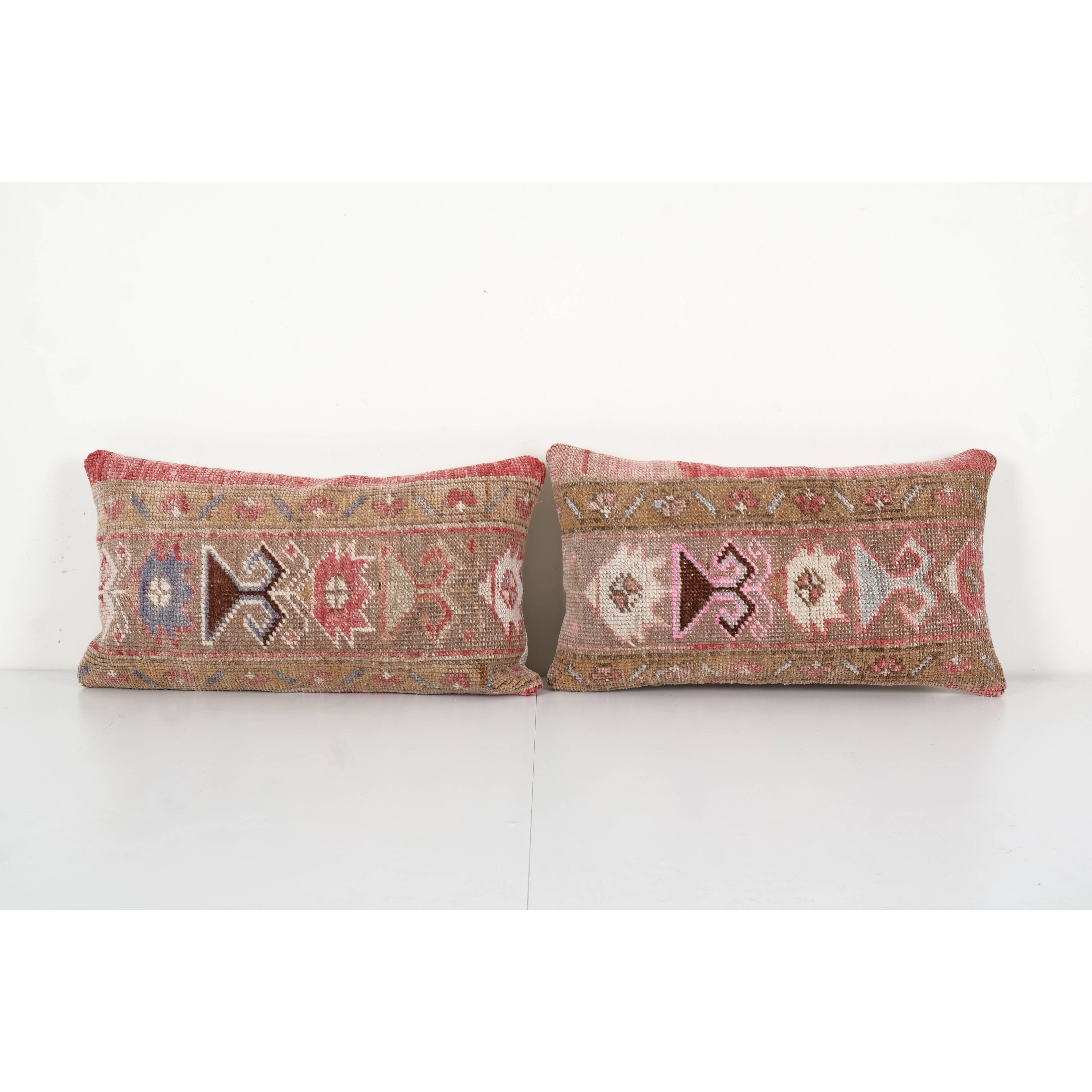 Handmade Carpet Cushion, Set of Two Colorful Bolster Turkish 🔥Handmade Turkish Kilim Pillow • Decorative Pillow 🔥 🔥Vintage Rug Pillow • Pair Pillow 🔥 🔥Handwoven Vintage Kilim Pillow • Throw Pillow 🔥 These beautiful 12" x 22 pillow covers were made from an authentic, vintage Turkish rug handwoven in the 1960s. Bright colors of wool adorn the front of the pillow and the cotton back has a hidden zipper enclosure. Makes a gorgeous addition to any couch, chair or bed. Handmade in Turkey The measures are about 12" x 22" inches / 30 x 56 cm Kindly note: - Cushion insert is not included. - Wash with care. - Depending on the screen of your device, colors in reality may differ a bit from the product pictures displayed. - Items are expressed shipped. Customs duties may apply. - Products are subject to availability.